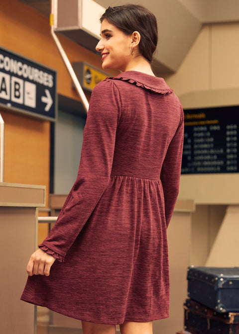Feiern Sie stilvoll mit dem Touched by Time Rüschenkleid in Crimson Embrace. Das Kleid aus mitteldehnbarem Strickstoff besticht durch seine dunkelrote Farbe, die an festliche Weihnachtsdekoration erinnert. Die Rüschen verleihen ihm einen romantischen Touch, während die kontrastierende Schleife Ihren Look traditionell und gleichzeitig modern wirken lässt – perfekt für jede Weihnachtsfeier. Maschinenwäsche kalt, zum Trocknen aufhängen. Obermaterial: 97 % Polyester, 3 % Elastan. Kontrast: 100 % Baumwolle. Länge: 86 cm. Importiert. Das Model trägt Größe S (US). Maße des Models: Größe 1,70 m / Brustumfang 86 cm / Taillenumfang 61 cm / Hüftumfang 91 cm.