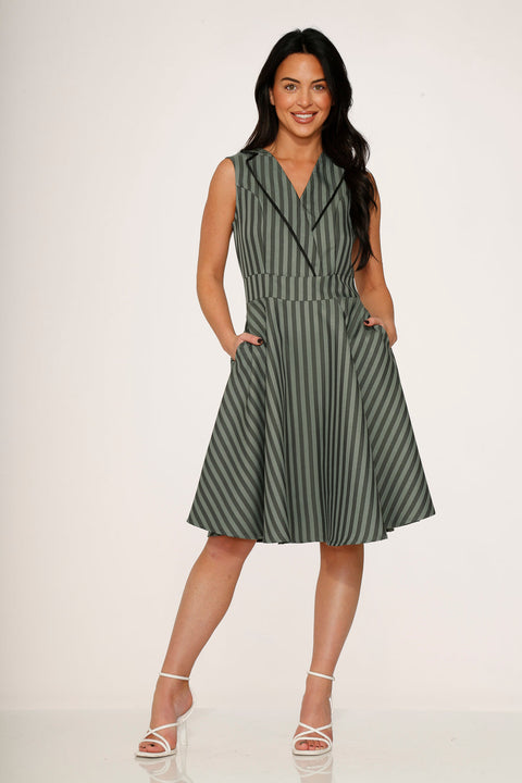 Mit klaren, vertikalen Streifen und einem taillierten Reverskragen vereint das Orchid Bloom Olive Stripe Swing Dress Vintage-Charme mit modernem Chic. Die schmeichelhafte A-Linien-Silhouette und der formgebende Bund machen es perfekt für jeden Anlass, vom Büro bis zum Dinner. 97 % Baumwolle, 3 % Elasthan – das Material ist dehnbar. Reißverschluss hinten. Länge: 104 cm. Importiert. Maschinenwäsche kalt, im Trockner bei niedriger Temperatur trocknen oder zum Lufttrocknen aufhängen.