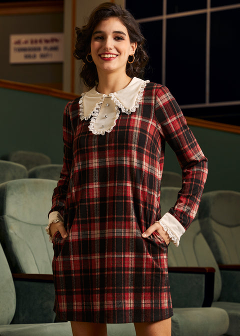 Das Spitzenkleid mit Blättermuster aus unserer ModCloth-Eigenmarke vereint zeitlose Herbst-Eleganz mit einem modernen Touch. Gefertigt aus weichem Ponte-Stoff, bietet dieses rot-karierte Kleid höchsten Tragekomfort dank mittlerer Dehnbarkeit und schmeichelt so jeder Figur. Zarte Spitzenborte und eine kontrastierende Knopfleiste verleihen der klaren Silhouette einen Hauch von Verspieltheit. Knopfverschluss und praktische Seitentaschen verbinden Funktionalität mit Stil. Dieses Kleid ist perfekt für Galeriebesuche oder ein entspanntes Herbstpicknick und verleiht Ihrer Garderobe einen Hauch von Magie.