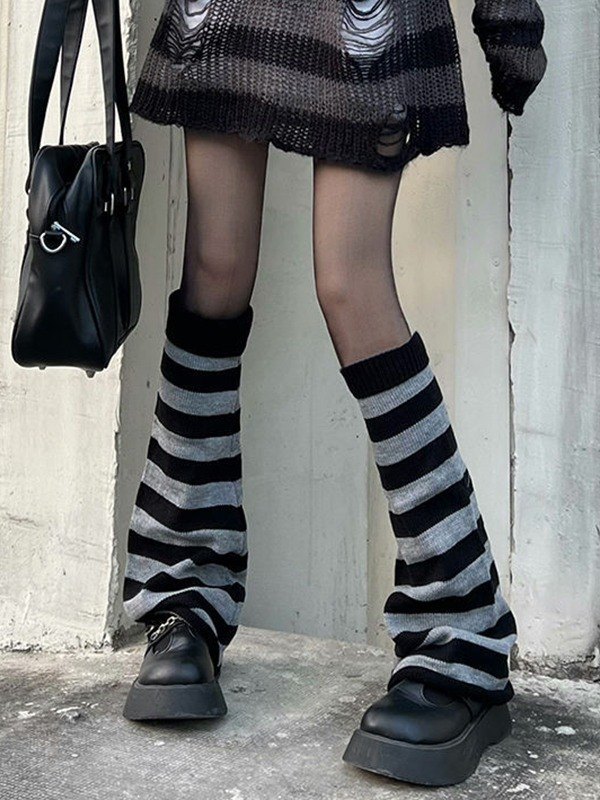 Contrast Striped Knit Leg Warmer