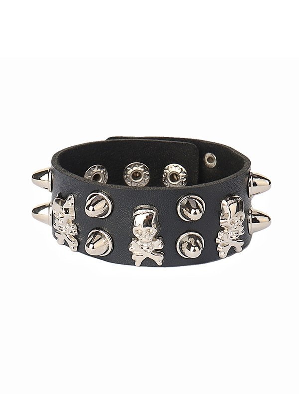 Punk Rivet Skull Chunky Pu Leather Bracelet