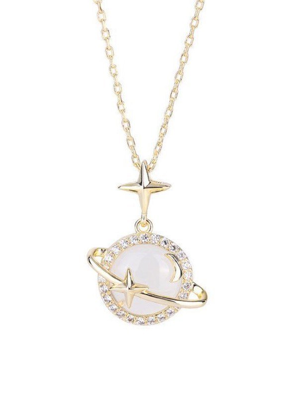 Galactic Rhinestone Opal Pendant Necklace