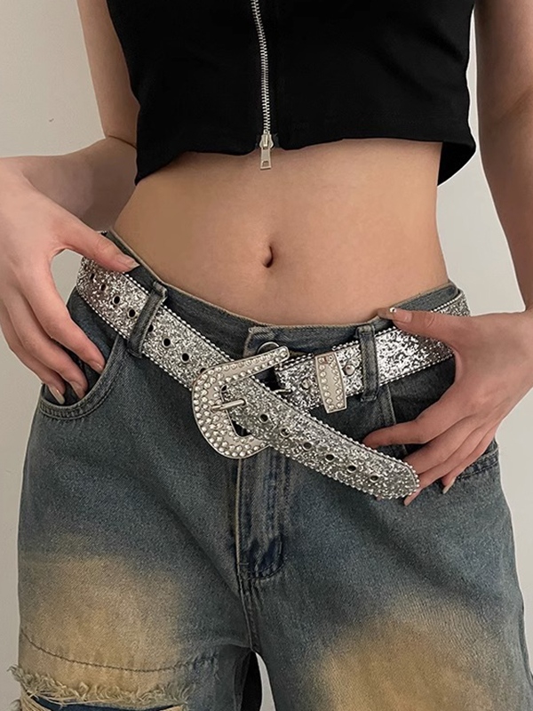 24pcs Rhinestone Chain Bow Decor Press On Nails