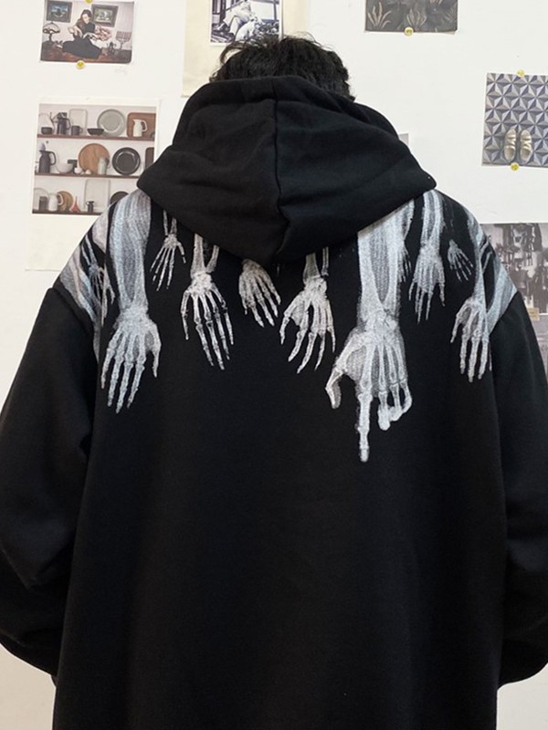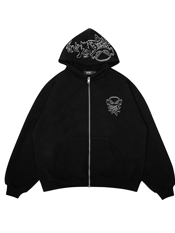 Men’s Rhinestone Letter Skull Black Zip Up Hoodie
