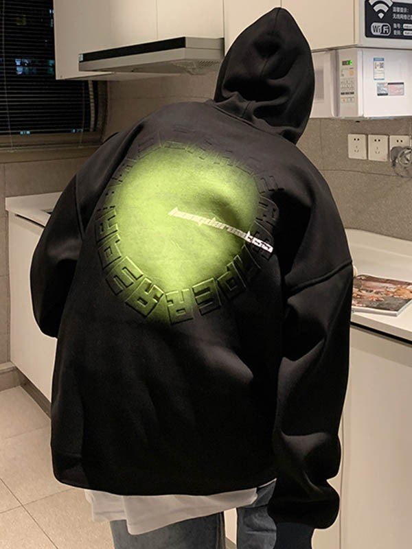 Men’s Hip Pop Shadow Print Oversized Hoodie