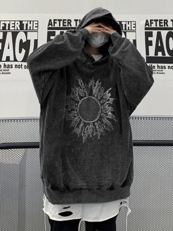 Men’s Vintage Print Drawstring Oversized Hoodie