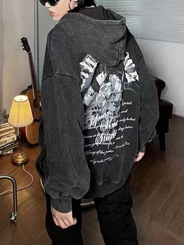 Men’s Washed Distressed Letter Print Oversized Hoodie