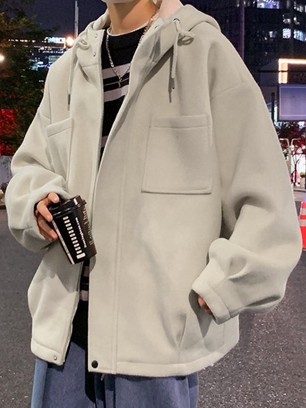 Men’s Solid Hooded Zip Up Short Woolen Jacket