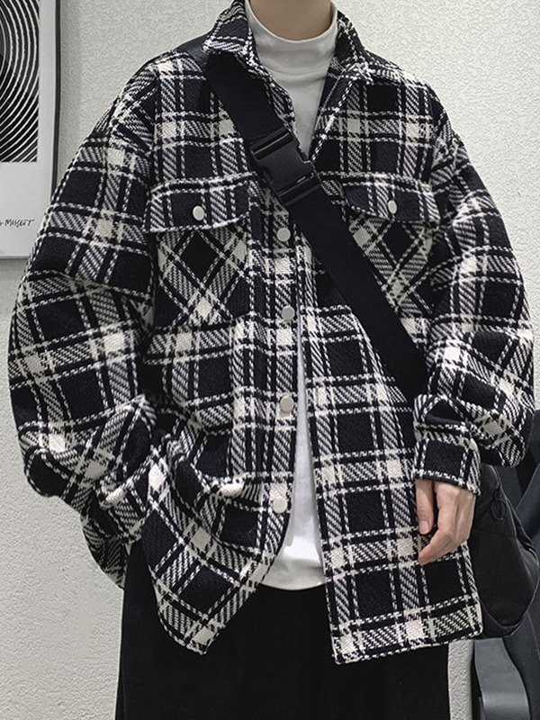 Men’s Tweed Checkered Long Sleeve Shirt Jacket