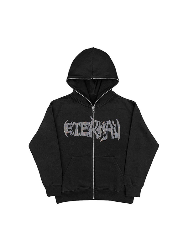 Men’s Spider Rhinestone Print Full Zip Oversized Hoodie
