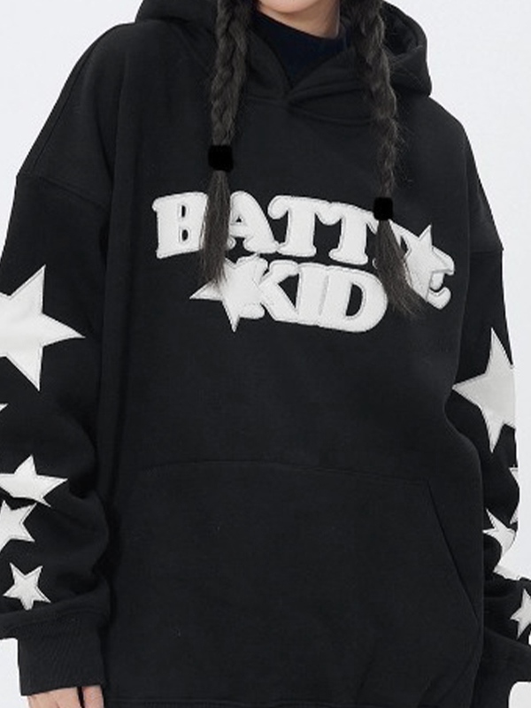 Men’s Washed Distressed Letter Print Oversized Hoodie
