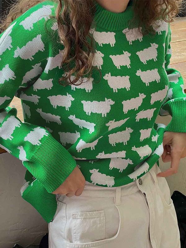 Solid V Neck Irregular Hem Baggy Knit Sweater