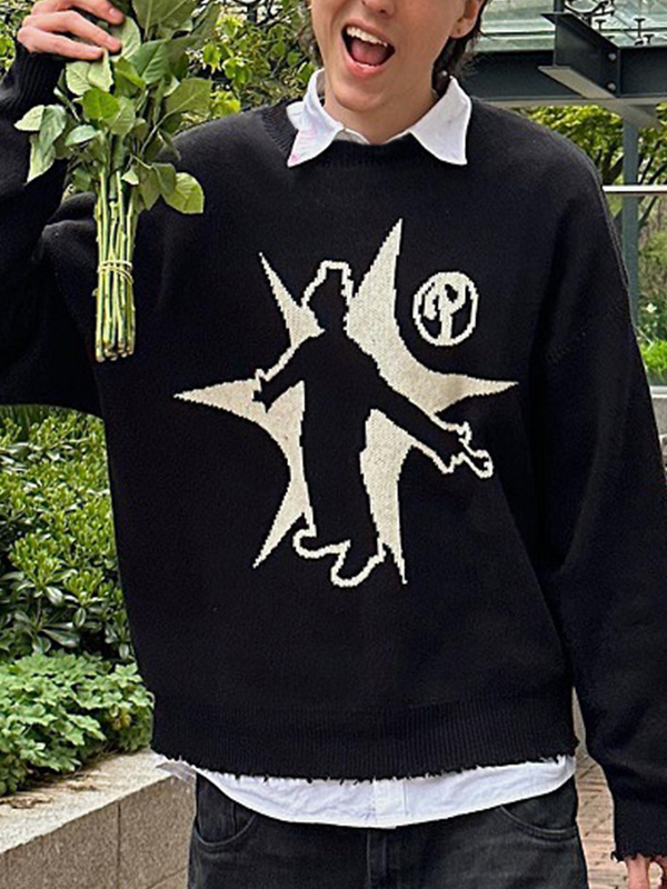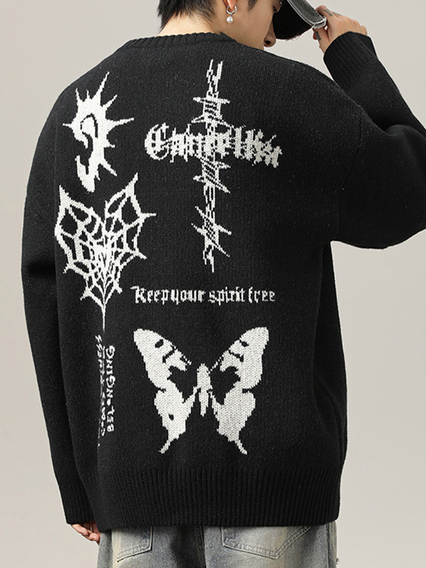 Men’s Three-dimensional Heart Decor Crew Neck Sweater