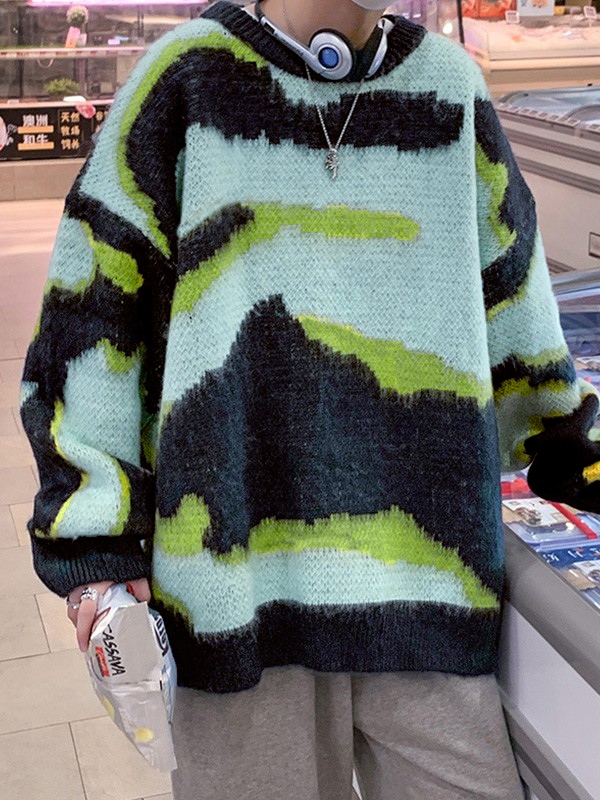 Men’s Contrast Color Stripe Pullover Knit Sweater