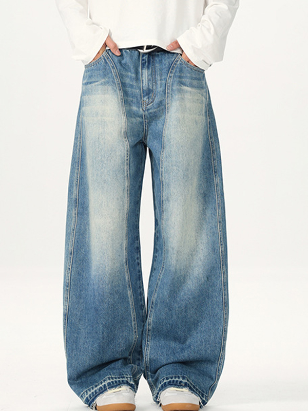 American Retro Washed Deconstructed Machete Loose Jeans