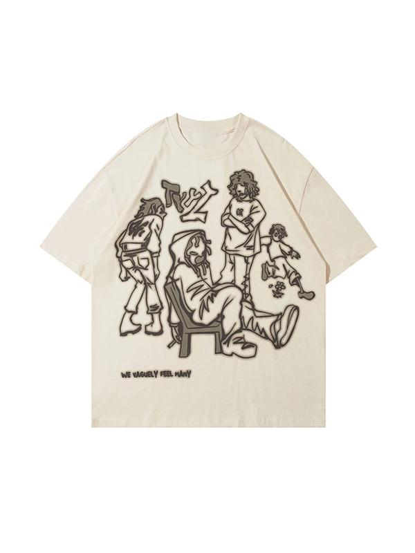 Street Character Graffiti Print Oversized Short Sleeve Tee