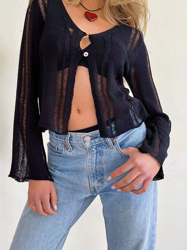 Cutout Slit Trumpet Sleeve Long Sleeve Knit