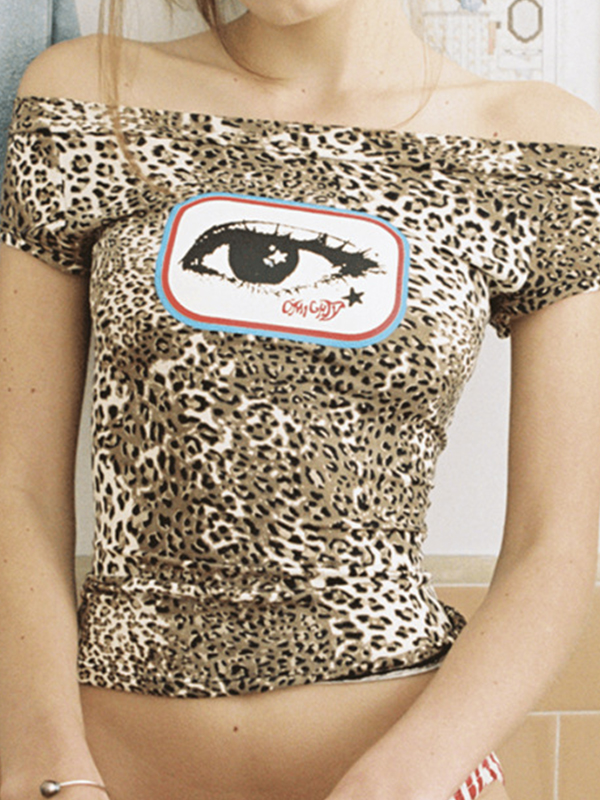 One Shoulder Leopard Print Short Sleeve Tee