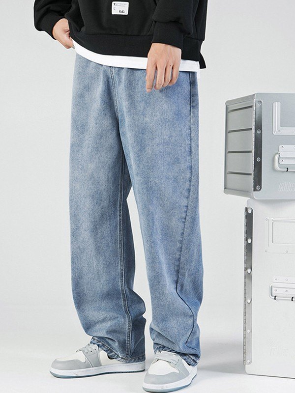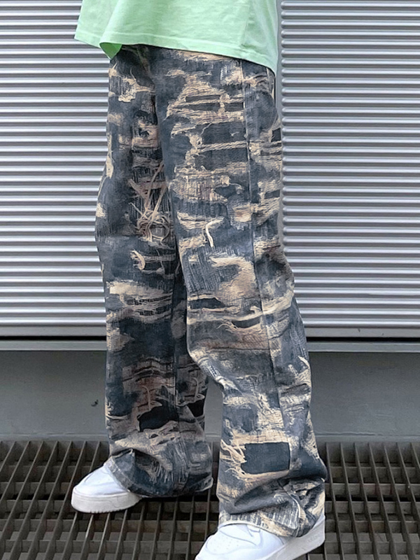Men’s Distressed Ripped Pattern Print Loose Jeans