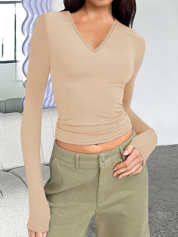 Solid Color Breasted Crop Turned Waist Knit Two Piece