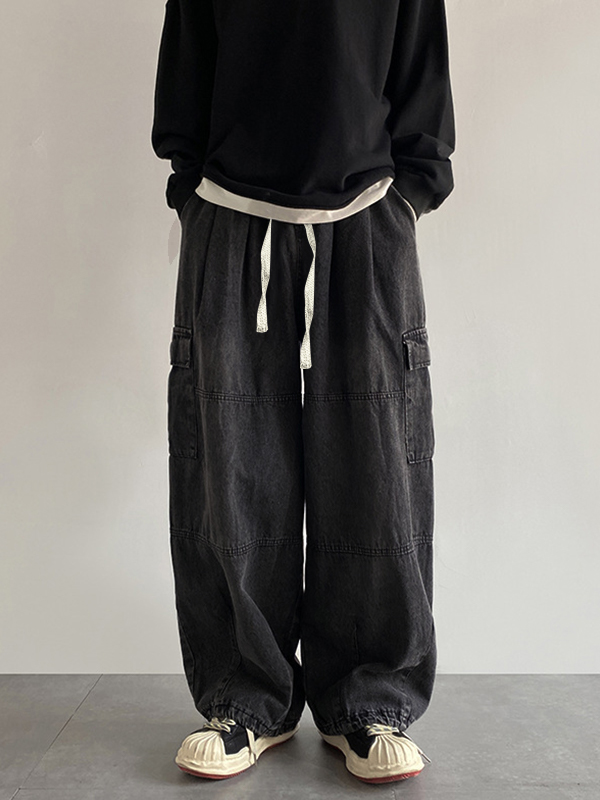 Men’s Vintage Distressed Wash Multi Pocket Cargo Pants