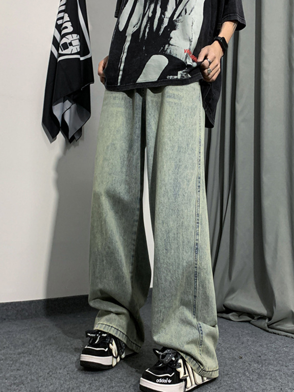 Men’s Vintage Wash Straight Leg Loose Jeans