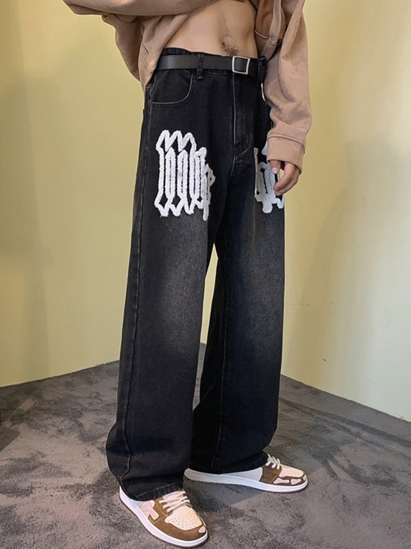 Men’s Fuzzy Letter Straight Leg Jeans
