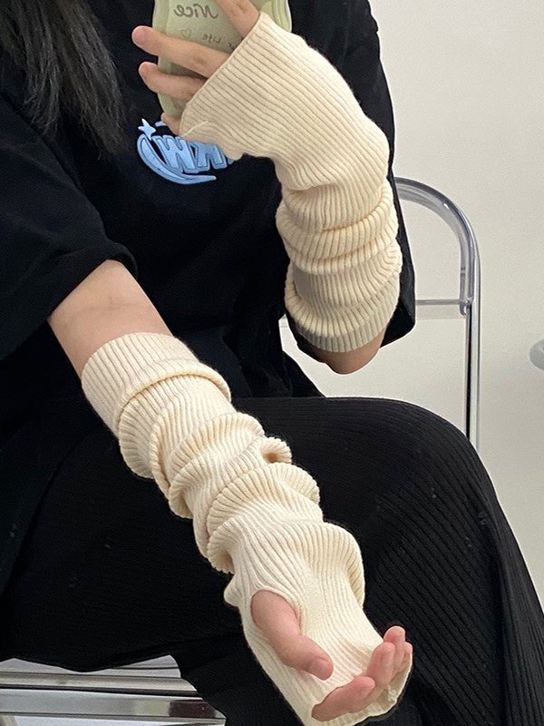 Ribbed Knit Thumbhole Arm Warmer Gloves