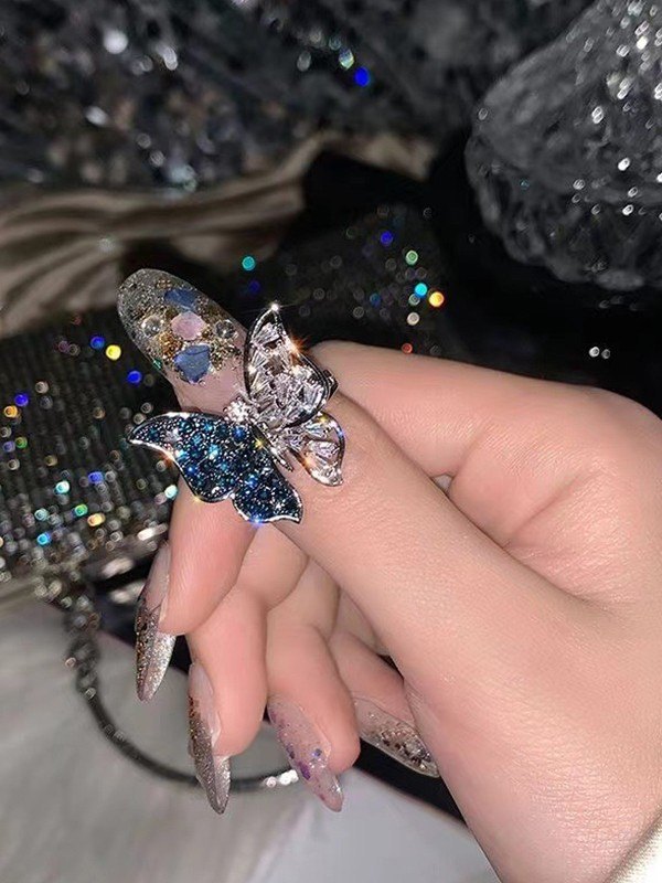 Rhinestone Butterfly Pendant Ring