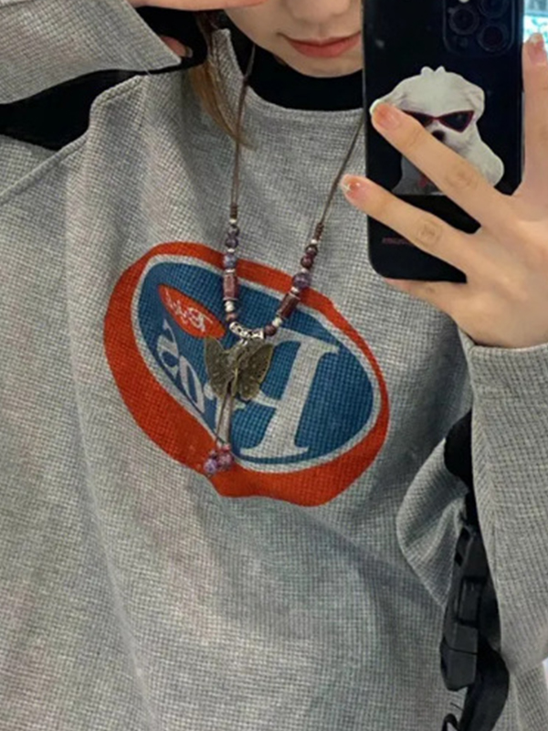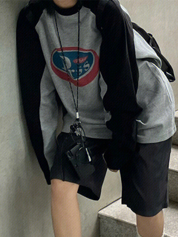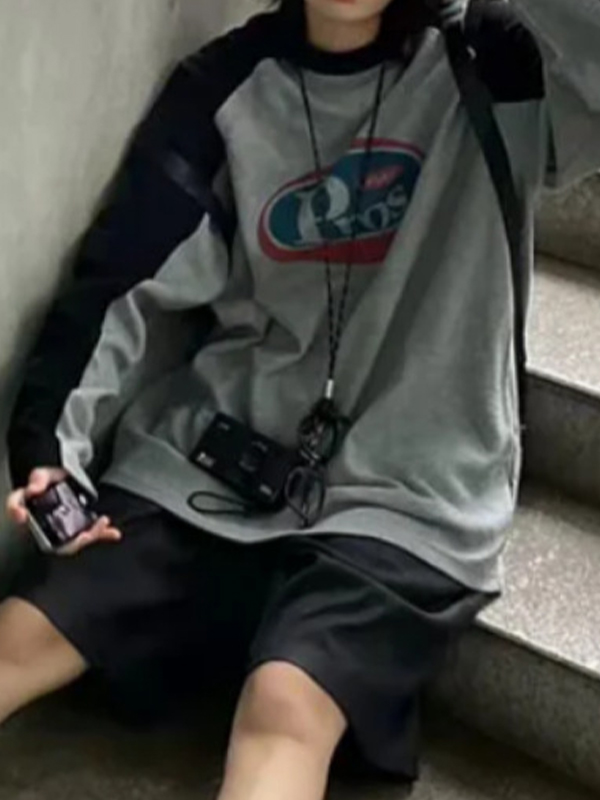 American Retro Color Block Letters Sweatshirts