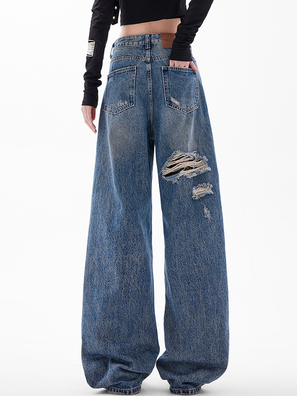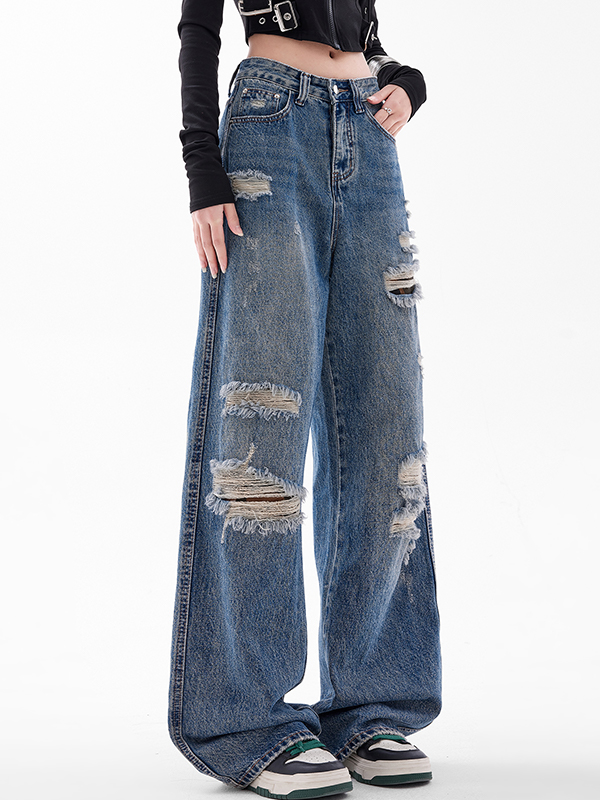 American Retro Hole Boyfriend Jeans