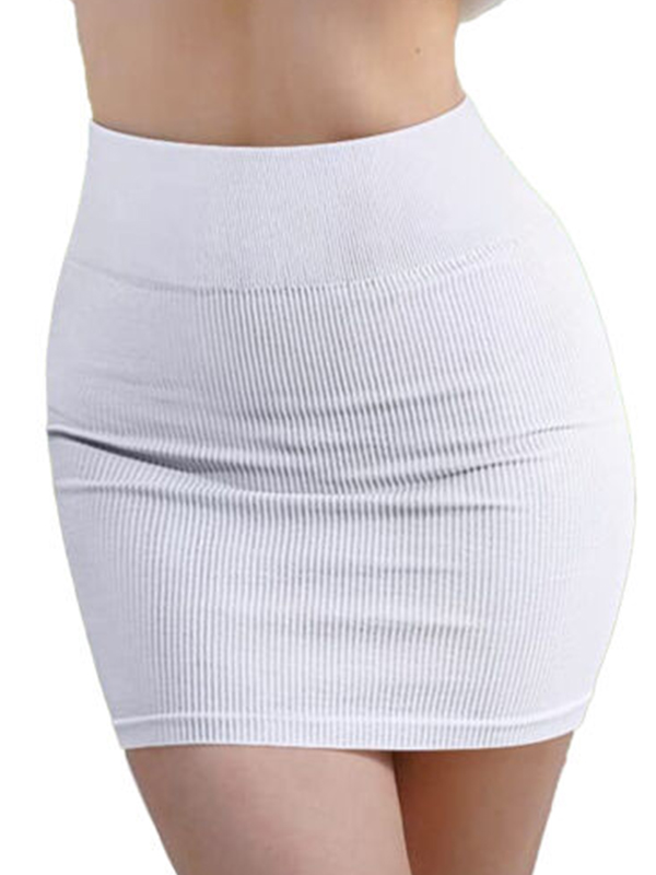 Solid Ribbed Elastic High Rise Bodycon Mini Skirt