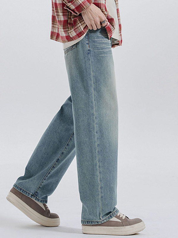 Washed Versatile Cat Whiskers Loose Jeans