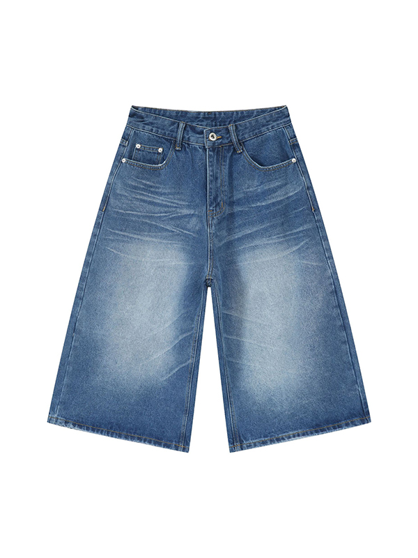 Men’S Retro Washed Wide Leg Straight Denim Shorts