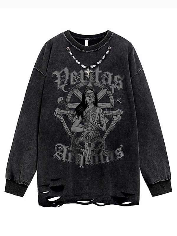 Men’s Wash Distressed Skull Print Short Sleeve Tee