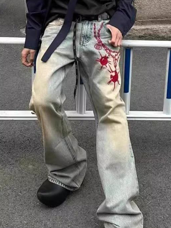 Men’S Retro Washed Wide Leg Straight Denim Shorts